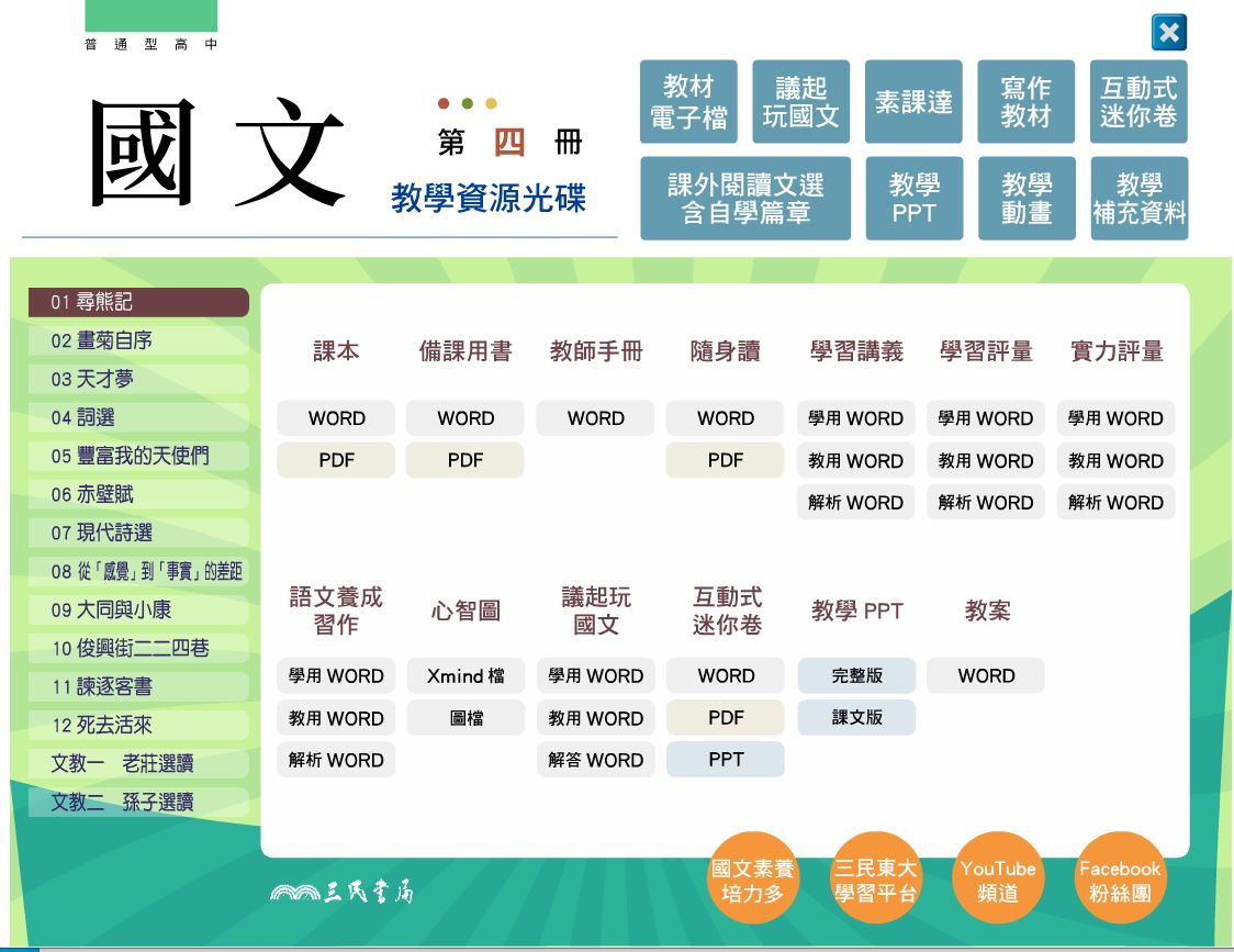 高中 三民版 國文科 2年級 教學光碟