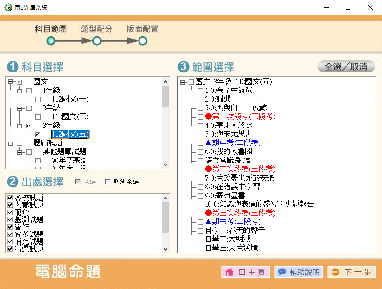 112學年上學期 國中命題光碟 南一版 1-3年級 國文(108課綱) 題庫光碟