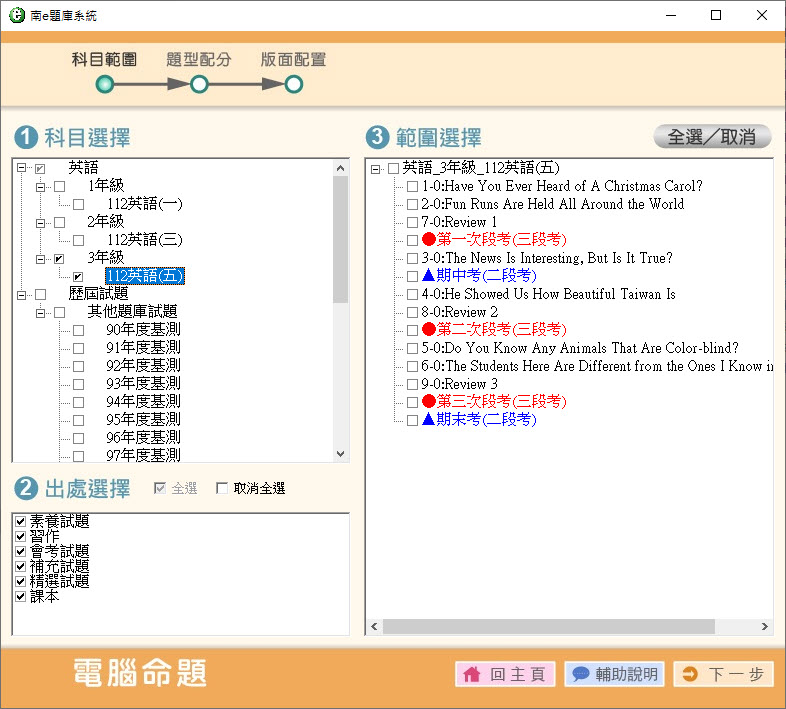 112學年上學期 國中命題光碟 南一版 1-3年級 英語(108課綱) 題庫光碟